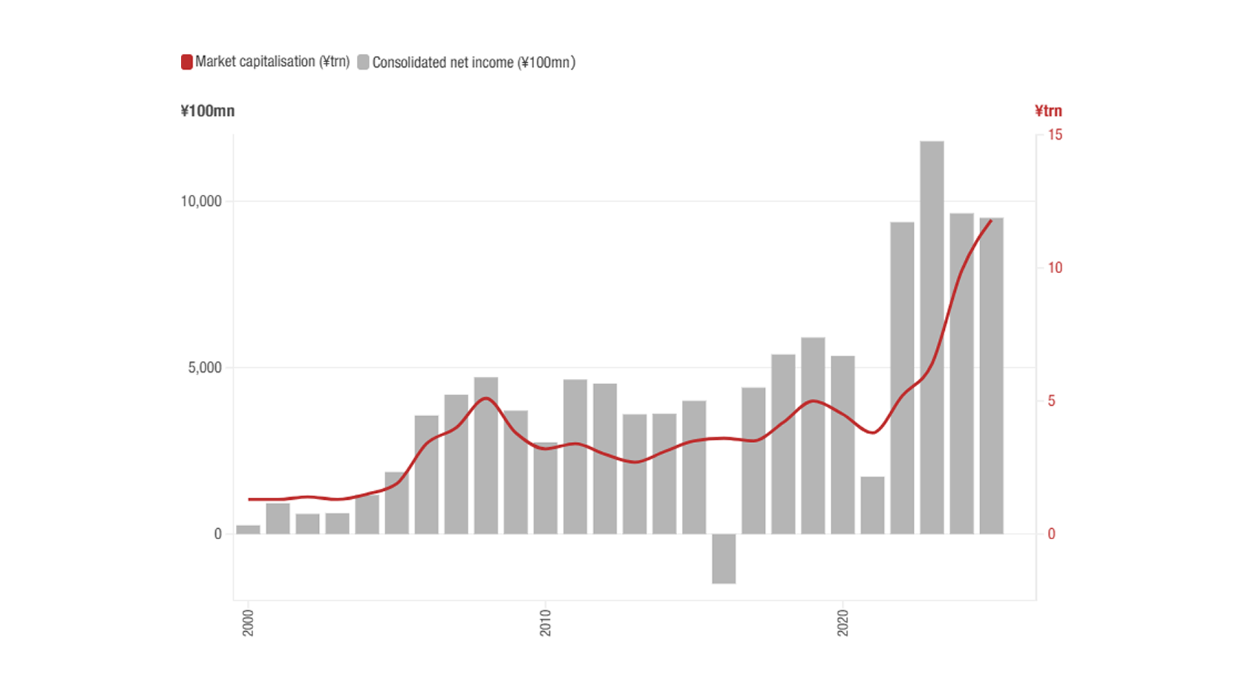 MC’s disciplined strategy has supported steady earnings growth, a moderate debt-to-equity ratio and attractive payout ratios, while boosting its market capitalisation more than tenfold over the past 25 years, achieving a net income of $6.03bn (¥950.7bn) in FY2024 and a market capitalisation reaching the $127bn (¥20trn) level in early 2026. This performance underscores the company’s ability to leverage its strengths as a sogo shosha—Japan’s general trading and investment model.