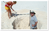 The Midway Atoll program for 2009 was held from July 17th to the 31st. This year's participants consisted of five volunteers from MC subsidiaries and group companies in North America along with Dr. Potts of the University of California Santa Cruz and three of his graduate students. Volunteers were busy throughout the program helping the researchers with taking samples and surveying reef organisms, as well as setting up data collection equipment underwater.