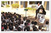 During the fiscal year ended March 31, 2009, MC accumulated 6,221 tokens. Part of the proceeds of this were allocated to the the Shanti Volunteer Association, which is involved in supporting the education and culture of children in Asia, mostly in the area of library activities. This association used the funds to locally create 350 kamishibai (story-telling cards) telling the story of the "Happy Couple Living at Mt. Sasayon," which were distributed in and around Phnom Penh, Cambodia to elementary schools (57 schools), teacher training colleges and libraries to which MC had provided construction aid.