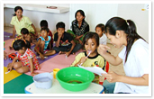 This donation inspired the establishment of a "tooth-brushing class" run by the nurses each day on a continuing basis to provide tooth-brushing guidance to children.