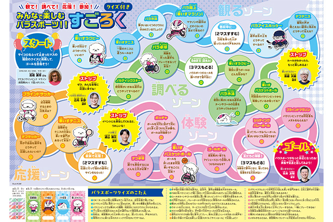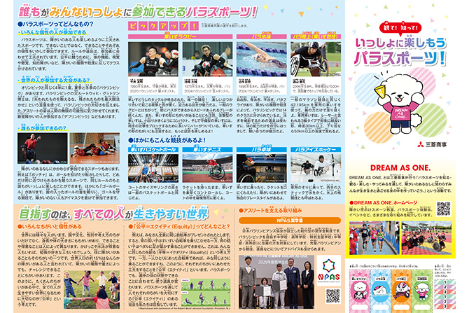 この度、パラスポーツを通して私達が目指す社会と当社が応援する所属選手の紹介を兼ね、パンフレットを制作しました。裏面はパラスポーツに関するすごろくとクイズとなっており、家族や友人同士で楽しみながら、子ども達がパラスポーツへの理解を深めるきっかけとなれば幸いです。