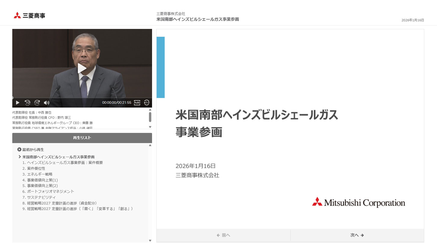 米国南部ヘインズビルシェールガス事業参画 説明会 動画配信中